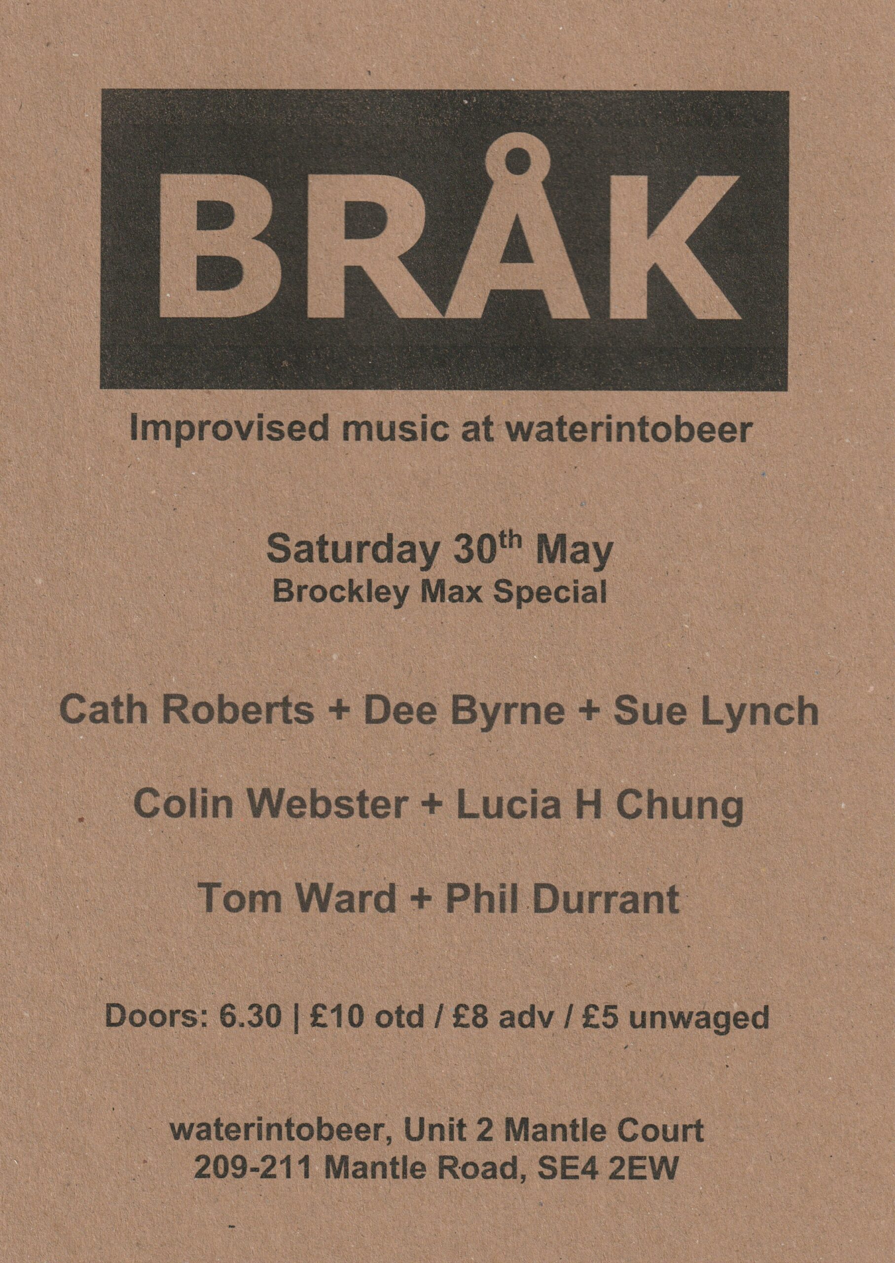 You’ll notice that the pricing has changed; this is to bring the gig more into line with other improv nights around London, and help us pay the artists more. You can buy tickets in advance from waterintobeer for £8 (£5 unwaged), or pay entry on the door for £10 (£5 unwaged).